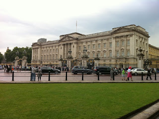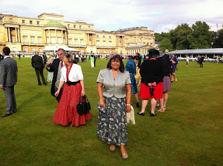 Summertime and it doesn't get any more British than standing at a Garden Party in the Rain discussing the weather - This Summer is no exception, Mark and I received a lovely embossed envelope from the Lord Chamberlain inviting us to attend the Royal Garden Party at Buckingham Palace in July 2011. So we arrived dutifully suited and booted and stood in a long queue clutching our passports as ID, although I can confirm that they don't any resemblance to what I look like in person ! (does anyone have a passport picture that does actually look like them? ) Anyway, we were led through the doors and into the quadrangle, and then through the main door into the palace itself.